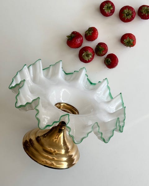 Mundblæst skål m grøn kant