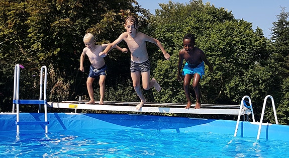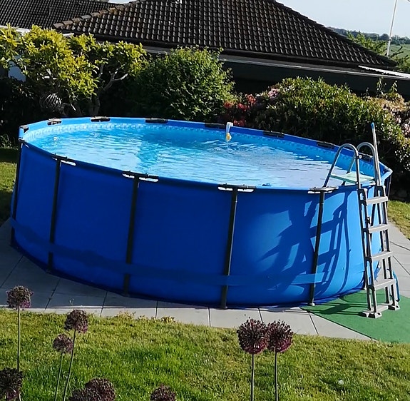Pool med varmepumpe og stillads