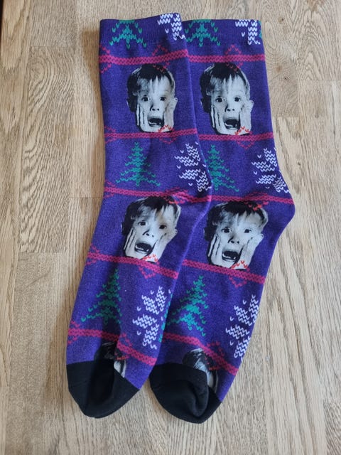 Alene hjemme strømper