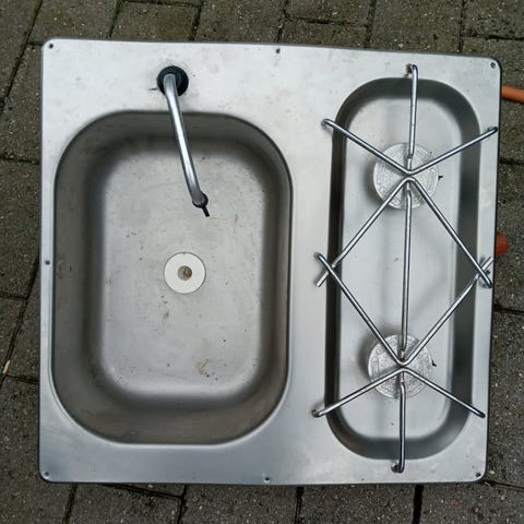 Køkkenvask med indbygget komfur
