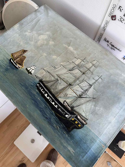 trærelief, motiv: sejlskib