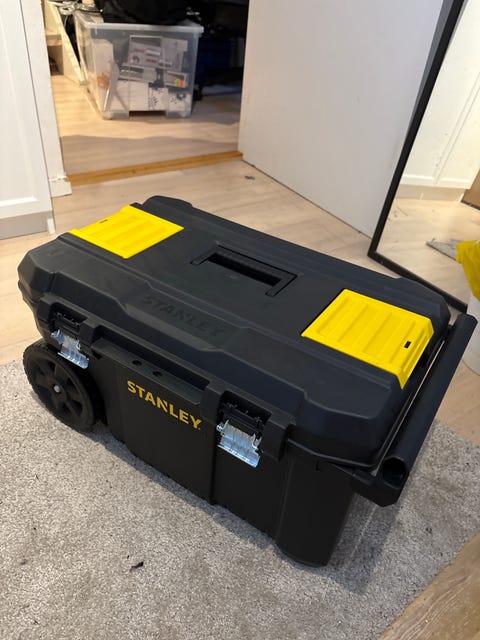 2 batterier, oplader og kasse
