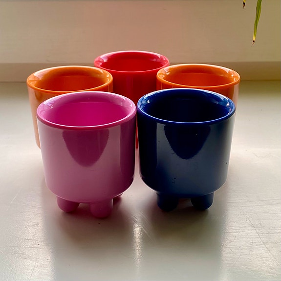 Farverige æggebægre.