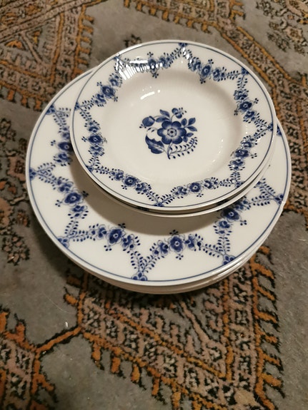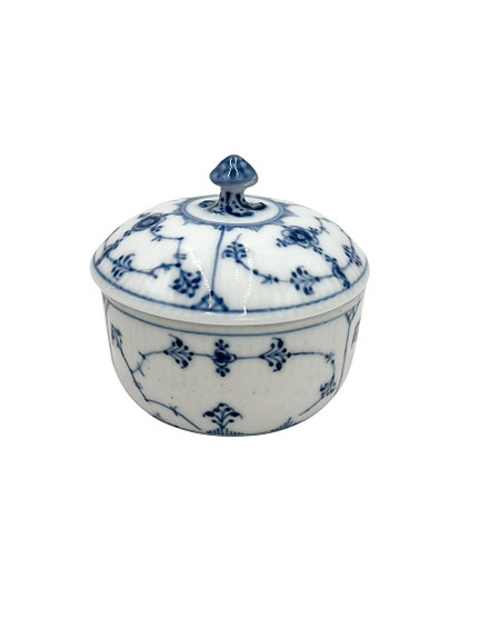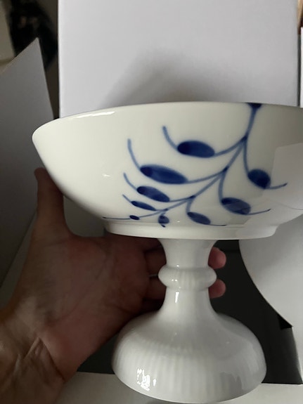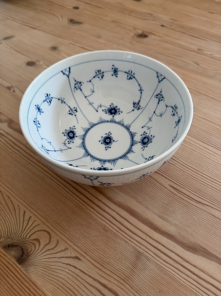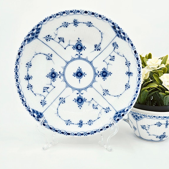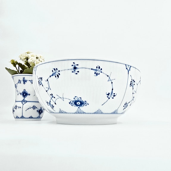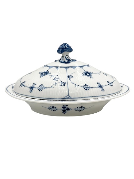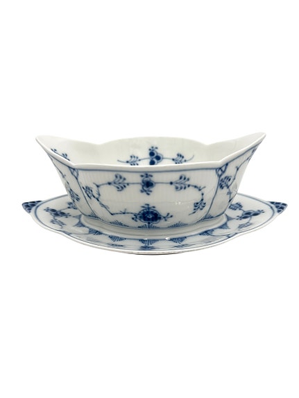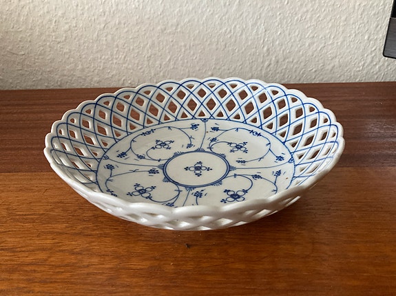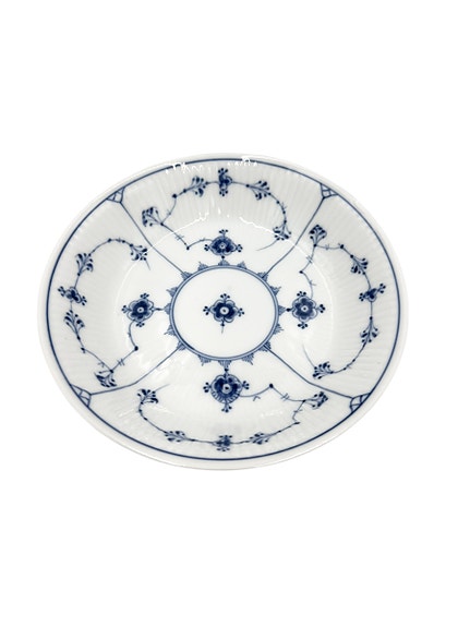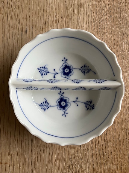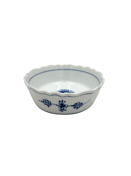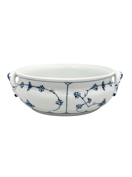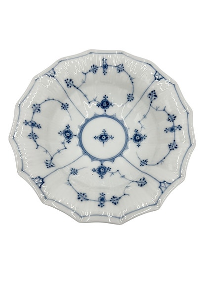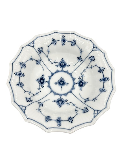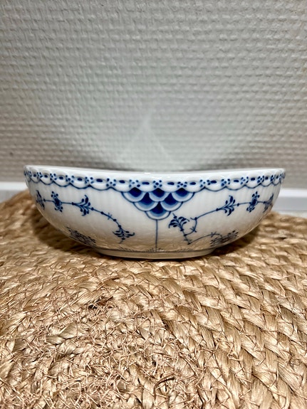 Royal Copenhagen porcelæn, blå mega musselmalet riflet firkante skål. Nr. 556.
