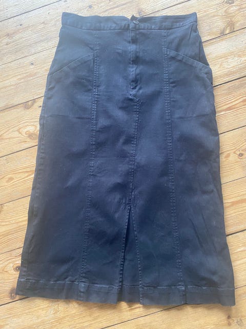 Flot sort nederdel med lommer, knapper og lynlås i str. 38. Mrk. Soyaconcept