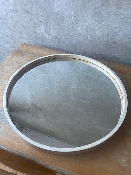 Rundt spejl i træ