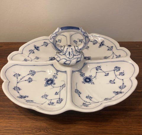 Blå mega riflet opsats/frugtskål
