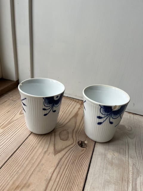 Porcelæn, Royal Copenhagen sort mega riflet salt & peber sæt, Royal Copenhagen