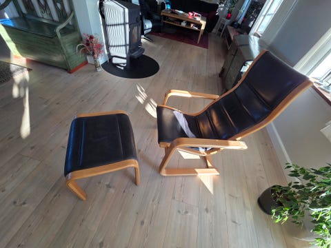 Nielaus sort læder loungestol