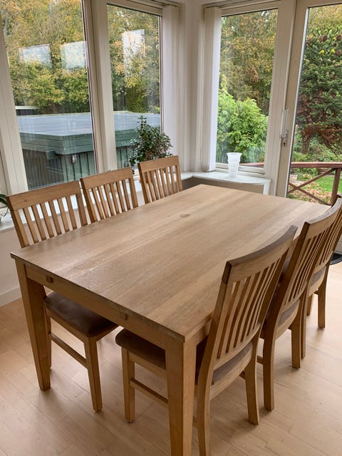 Egetræs spisebord med stole