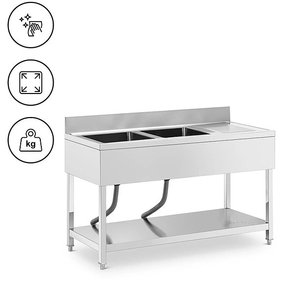 Køkkenvask stål – 140 x 70 x 94.5 cm