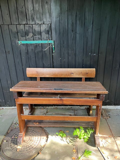 Fin gammel skolebænk.