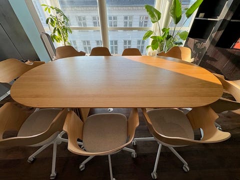 Hæve sænke bord med stol.