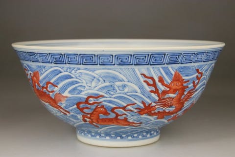 Stor sort/hvid opalglas skål