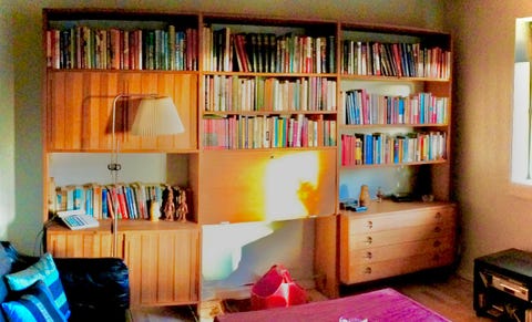 Bogreol og vitrineskab