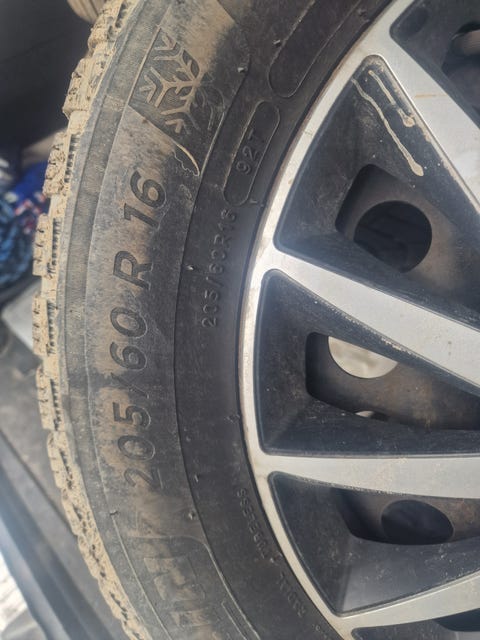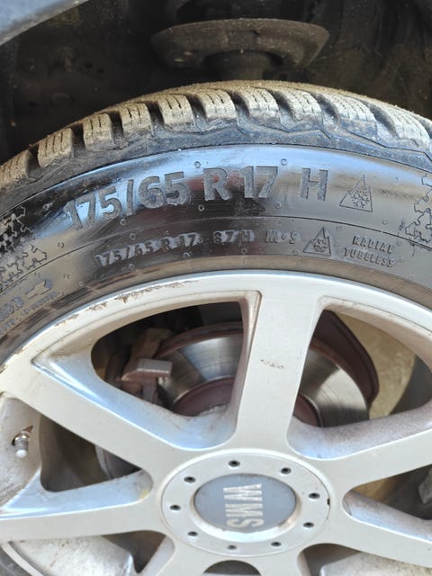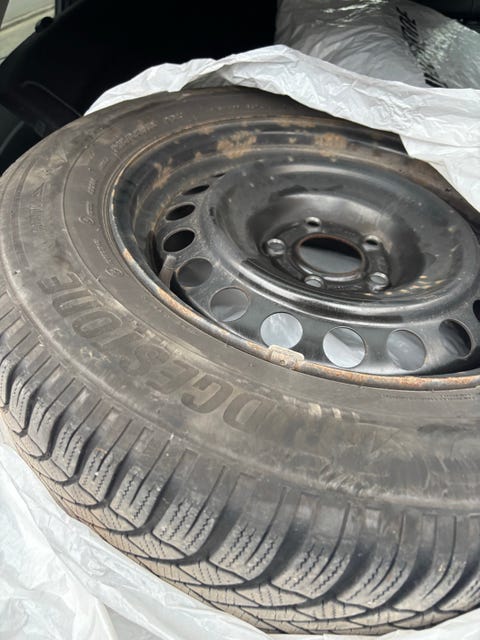Vinterdæk på stålfælge.