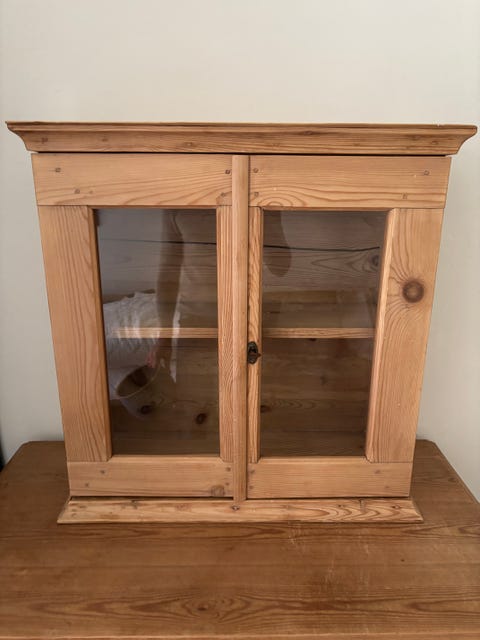 Vitrineskab fyrretræ med glaslåger