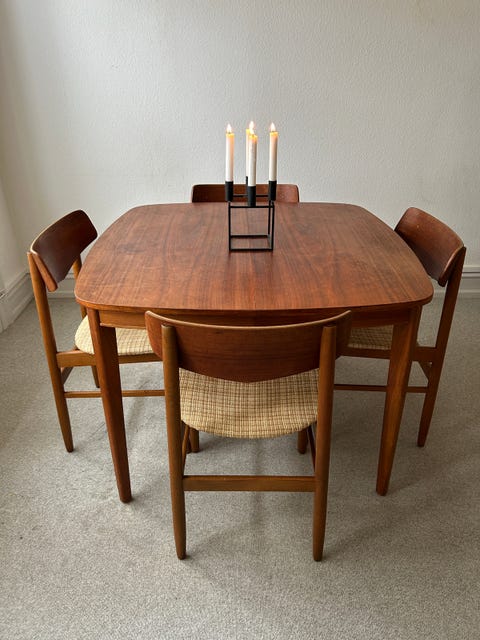 Retro teak spisebord + stole