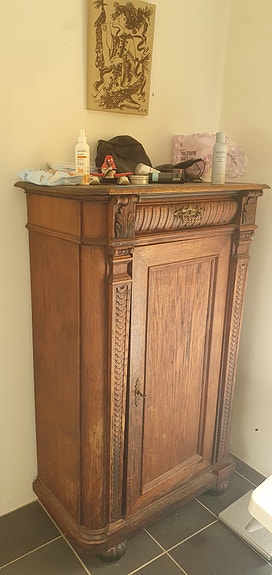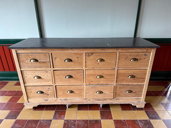 Blå skab med marmortop