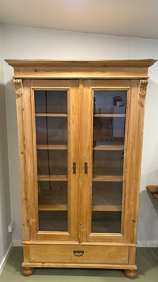 Vitrineskab i fyrretræ med glaslåger