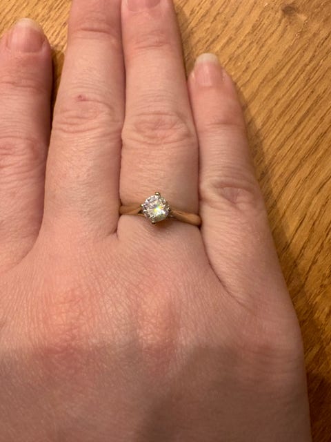 Smuk 11 karat moissanite ring sælges