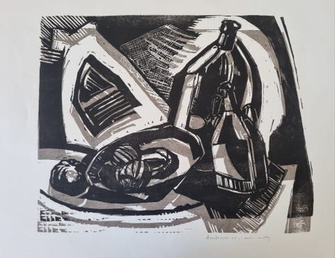 Håndmalet flaske 100kr.