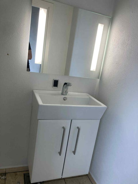100 cm. BADMØBEL BLÅ FRA UDSTILLING