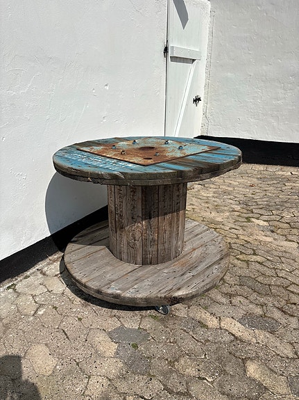 Antik blå bord med en skuffe
