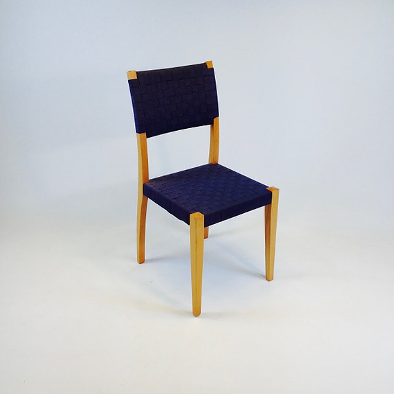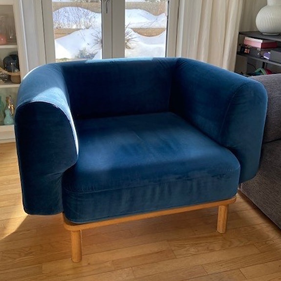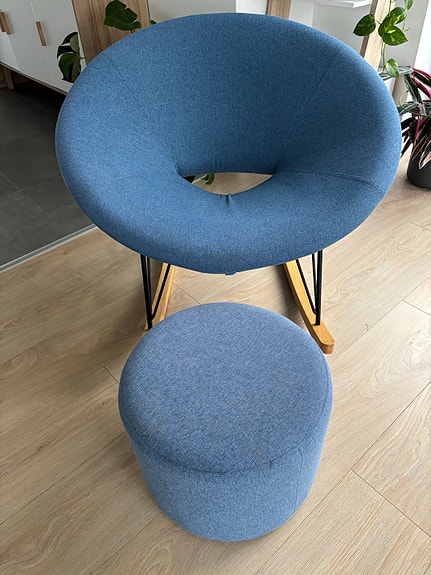 Blå stol med træ ben