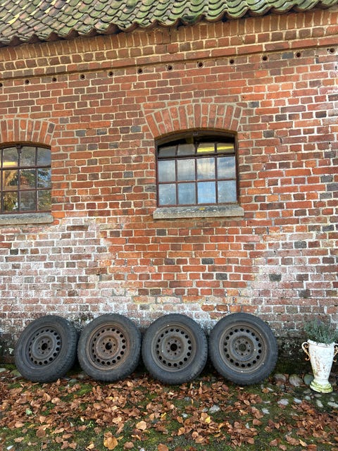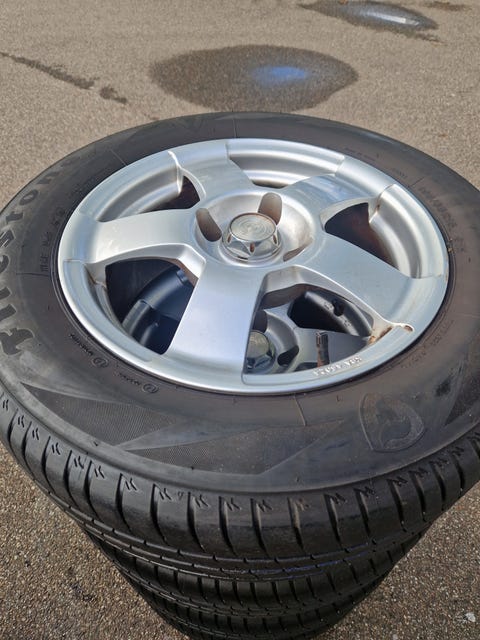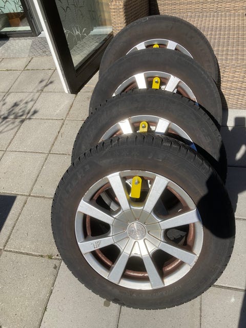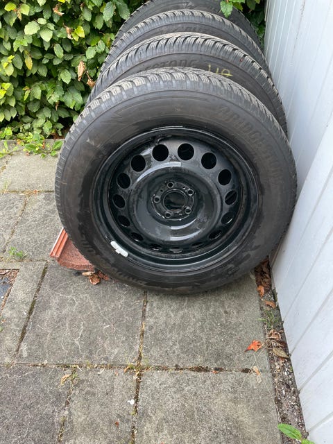 Vinterdæk med fælge og bolte.