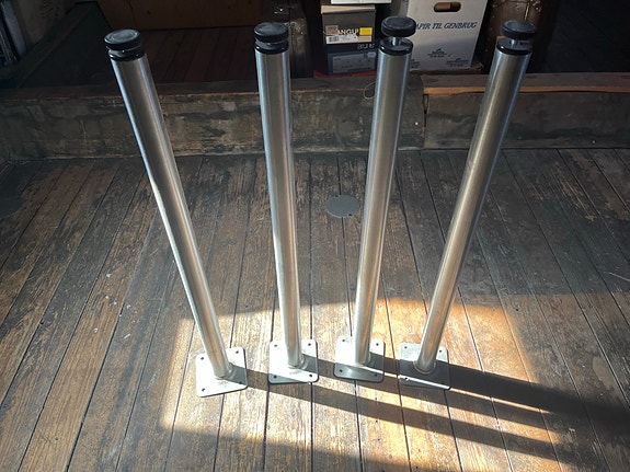 4 bordben i stål 150 kr.