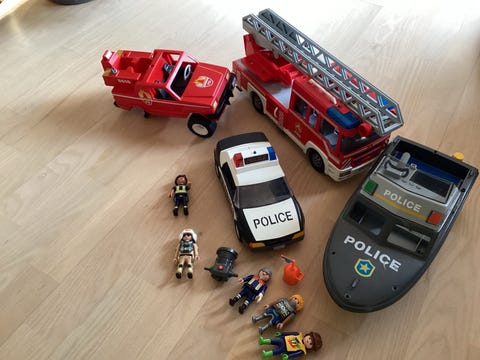 Fisher-Price Little People brandstation samt gravemaskiner, biler, figurer