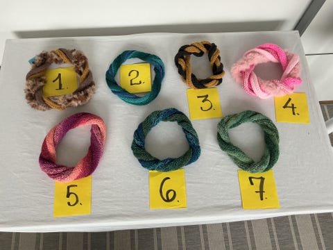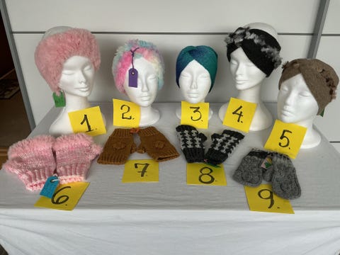 Håndstrikket halskrans mm