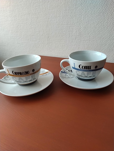 Kaffe og te kopper med tilbehør