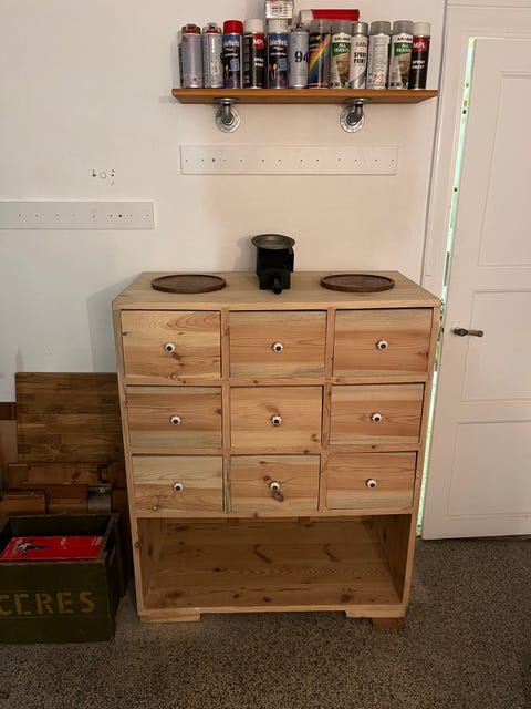 Hylde med skuffer