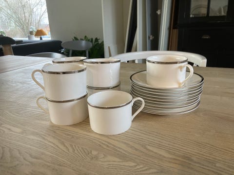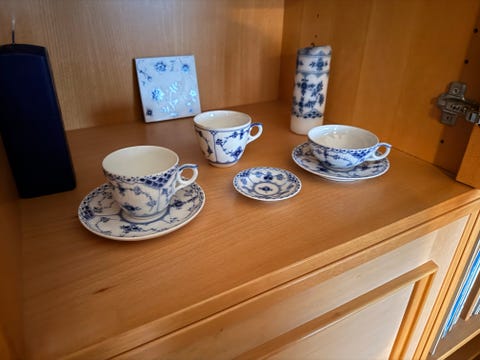 Royal Copenhagen Blue Fluted Mega porcelænssæt kopper skål og fad blå hvid