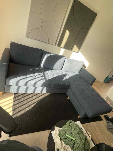 Blå 3 personers sofa m. Chaiselong
