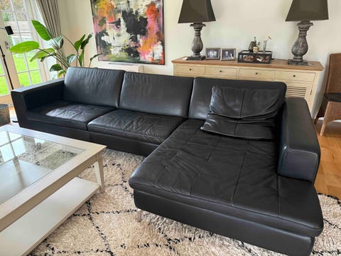 Lædersofa med chaiselong