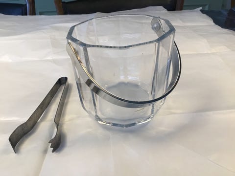 Glas isspand med tang.