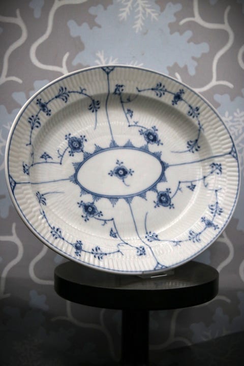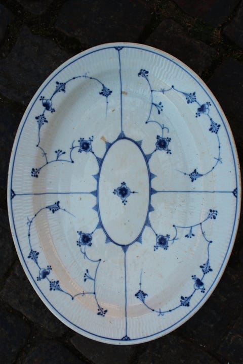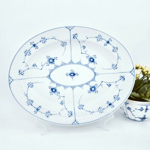 Royal Copenhagen Halvblonde Musselmalet Riflet Ovalt fad 1 sortering Porcelæn