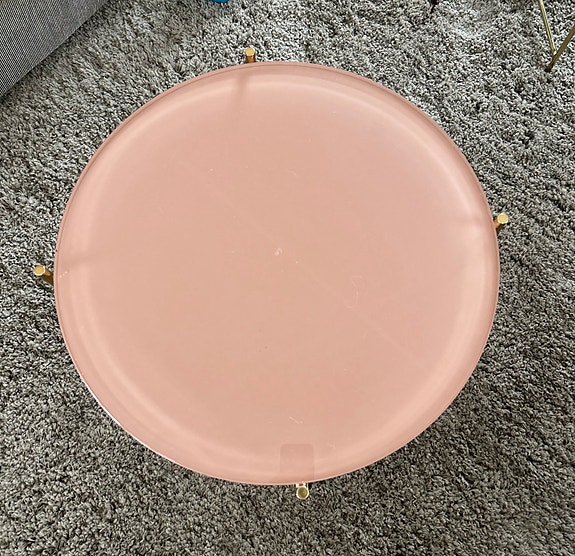 Rundt spisebord med plade og 4 stole
