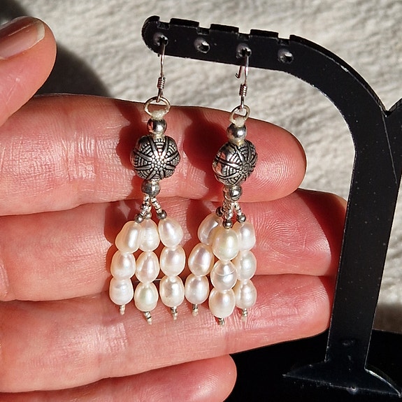 Øreringe, sølv, perler, 925