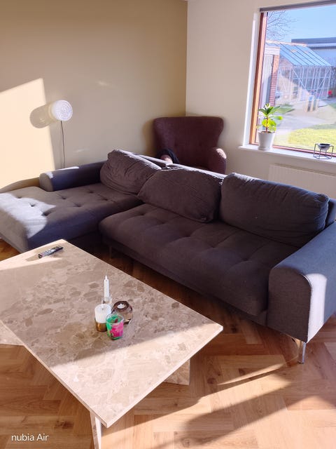 1 stofsofa med træben gives væk