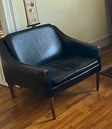 Lænestol sort læder med træstel