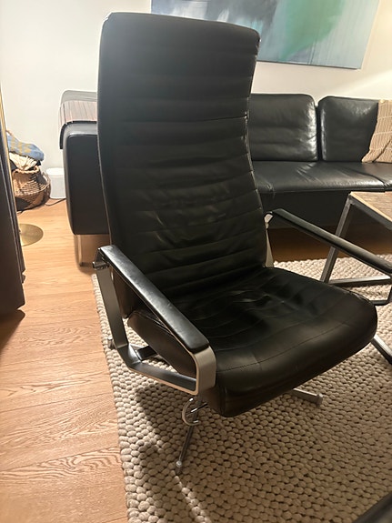 Ny lænestol sort ægte læder