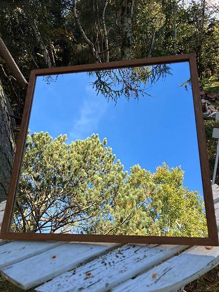 spejl med brun træramme