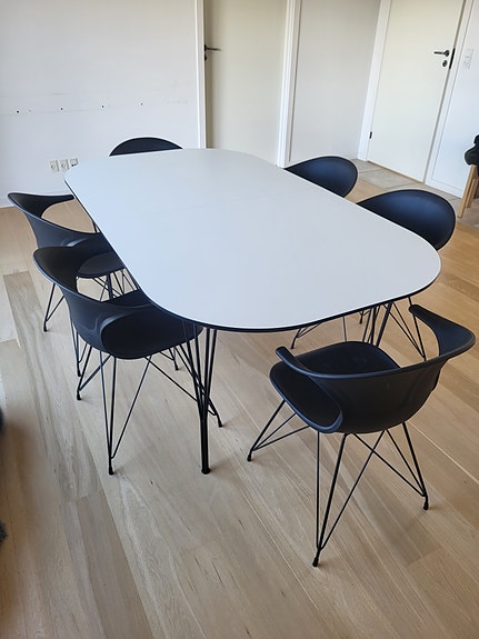 Hvidt spisebord, 6 stk stole.