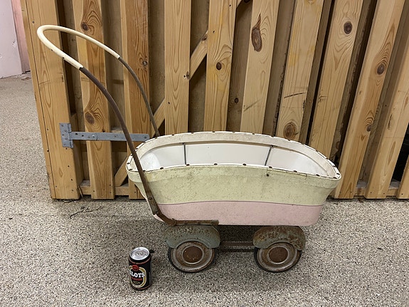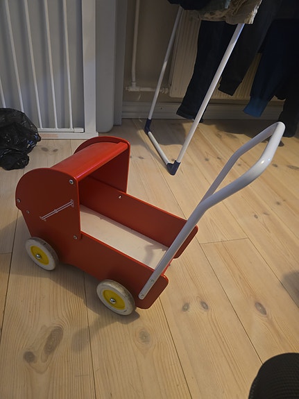 Rød træ dukkevogn