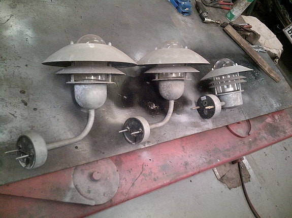 2 grå væglamper