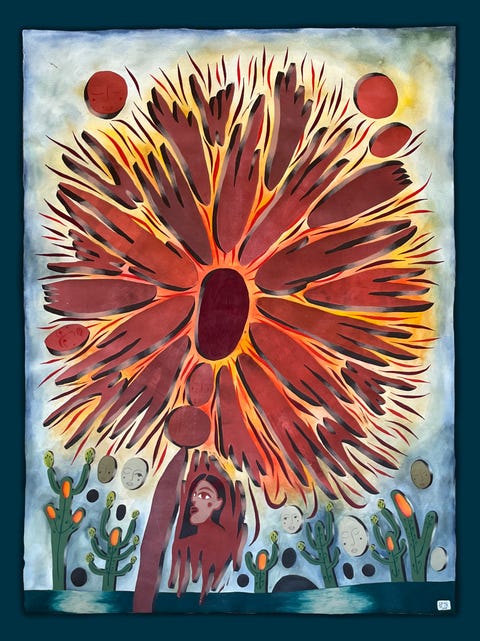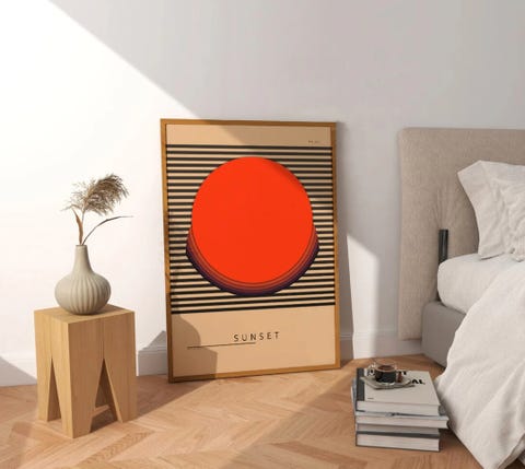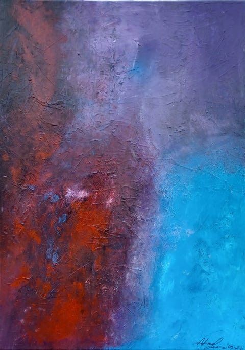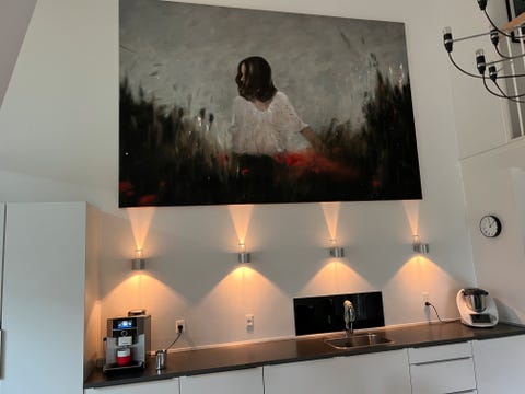 Stort Vægmaleri Kunstværk Sort/Hvid/Rød
